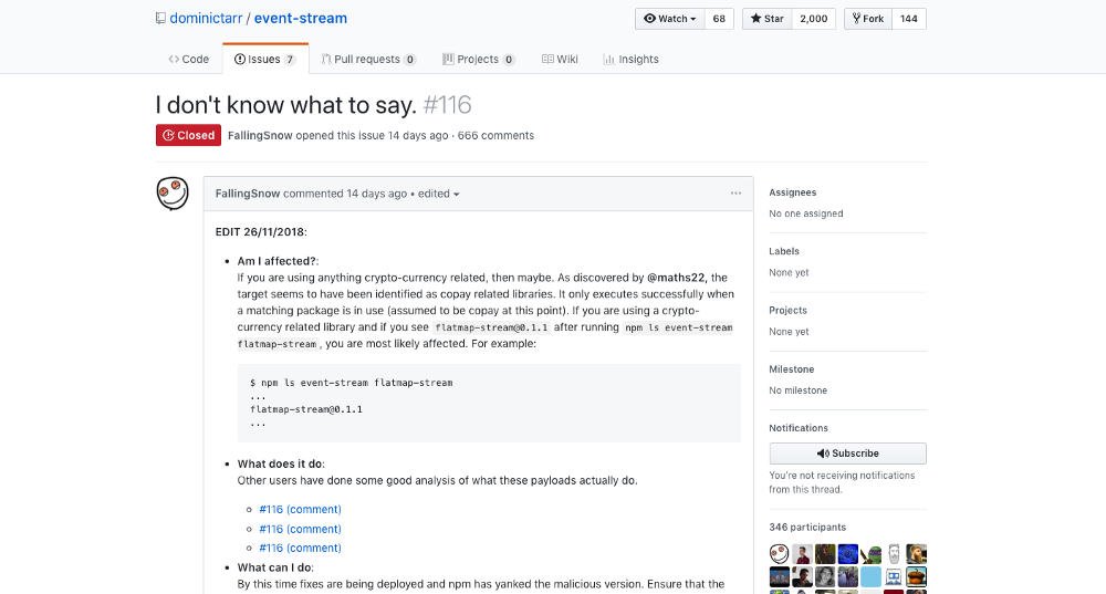 The issue raised for the event-stream breach. It’s a grizzly flame war that I would not recommend reading